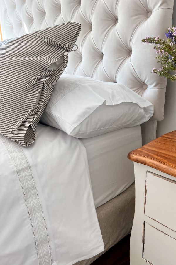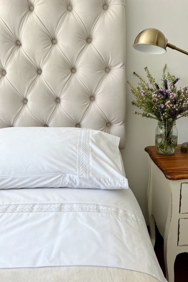 Nuestras Sábanas son de 200 hilos con composición 50% Algodón y 50% poliéster. Este tipo de composición es de suavidad óptima, fácil de planchar y durable no generando motas en el corto plazo. Todas nuestras sábanas están pensadas para colchones modernos, con una altura mayor para darle mejor agarre a la sábana y que esta no se corra. No achican en el lavado.
